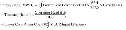 The first step in this method to verify the Lower Colo Power Coeffs are known. If either of these coefficients are not known, a RiverWare error is flagged and the simulation run is terminated. Then, the LCR Input Efficiency slot is checked. If it is not known, it is assumed to be 100% efficient and the LCR Input Efficiency is set to 1.0.