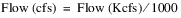 where the Timestep is in hours. The constants used in this equation are to convert the input to RiverWare standard units.