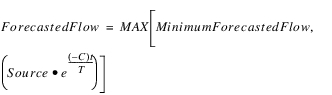where Source is the value in the Source slot at the end of the period of perfect knowledge, C is the recession coefficient, t is the elapsed time of the forecast period, and T is the total time from the end of the period of perfect knowledge to the end of the forecast period.