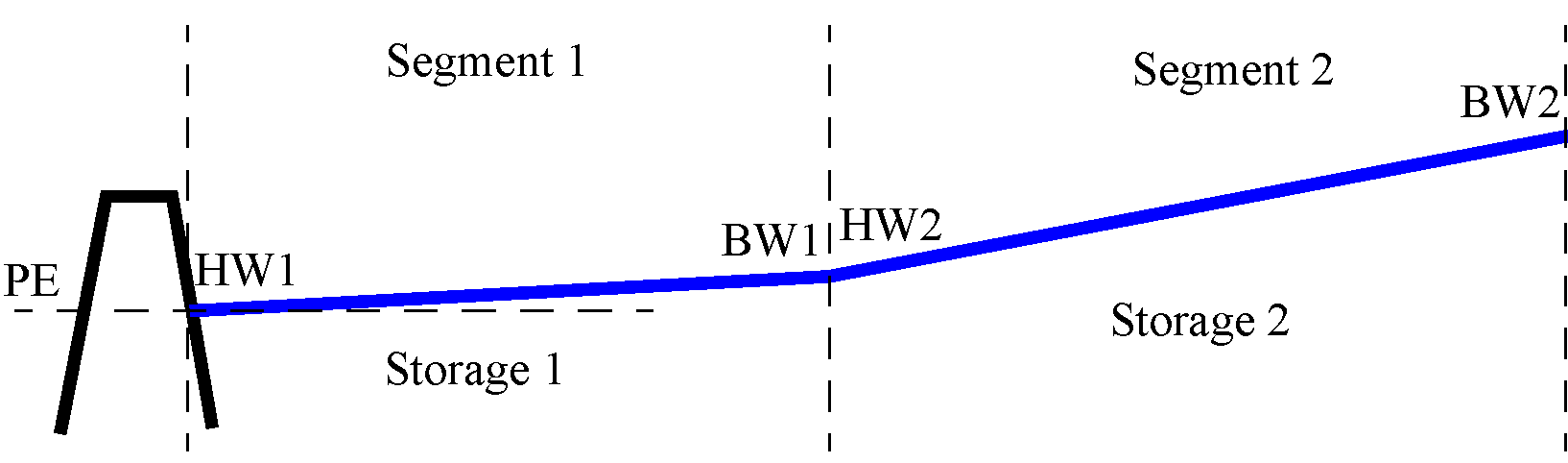 Information: Multiple segments are useful for large reservoirs and relatively small timesteps, where the propagation of a change in flow takes more than one timestep to travel the length of the reservoir. Reservoir segments are numbered in the upstream direction, with the first segment being the farthest downstream.