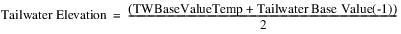 5. If both the previous timestep’s Tailwater Base Value and the TWBaseValueTemp are known, the Tailwater Elevation is calculated as follows: