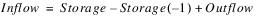 This equation may or may not contain other elements reflecting the user method choices (including hydrologic inflow, evaporation, precipitation, seepage, and bankstorage). Spill and release are then found according to the user selected methods and the following equation: