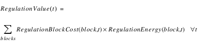 Simulation and Optimization use the following equation to calculate the value of regulation by summing over blocks.