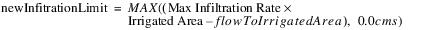 The following equations are executed from the dispatch method (this applies to a standalone or No Structure water user). This method is not available on a sequential Agg Diversion Site, but the soil moisture methods above can be used.