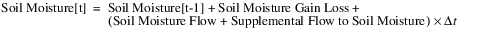 Information: For the initial timestep, this slot must be valid. If this slot is not input, it is computed as the Maximum Soil Moisture times the Irrigated Area at the initial timestep. That is, the soil moisture starts full.