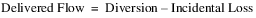 Calculate how much of the diverted flow is actually delivered, as follows: