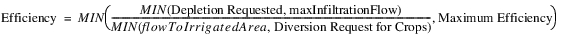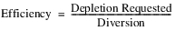 If the Maximum Efficiency is greater than the ratio of Depletion Requested to Diversion Requested, the Efficiency is calculated as follows: