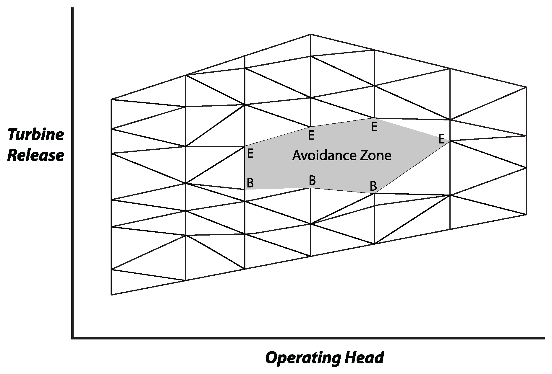 Integer variables are also used to model discontinuities. For example, avoidance and cavitation zones are regions where power cannot be generated without damaging the equipment. These zones create a discontinuity in the power curve, and integer variables are used to model this discontinuity.