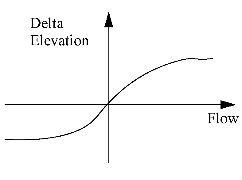 Defined by: Numerical 3-D Approximation in terms of Lower Elevation and Delta Elevation. Approximation is based on the Canal Flow Table.