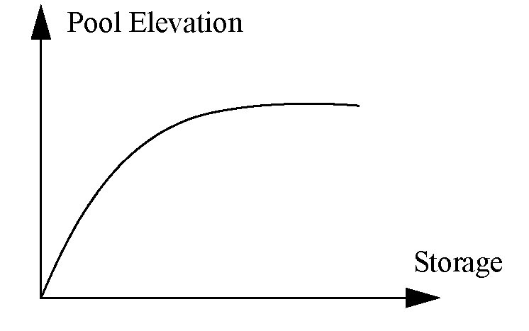 Pool elevation storage relationship. Not drawn to scale.
