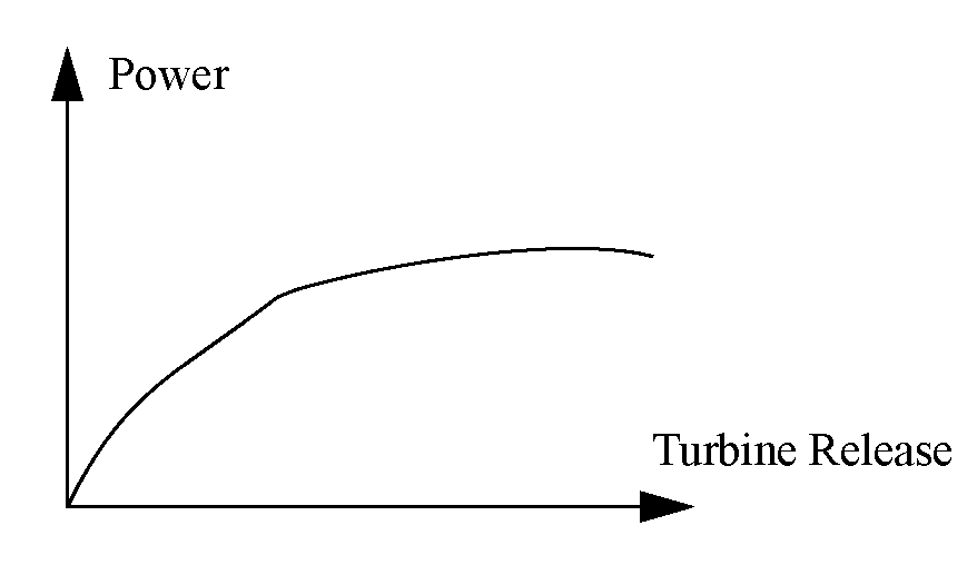The Plant Power Table should have increasing values of Operating Head and Turbine Release. Power should be a concave function of Operating Head, but concavity is not strictly enforced. The preferred order of approximation is substitution, piece-wise, two-point line, tangent.