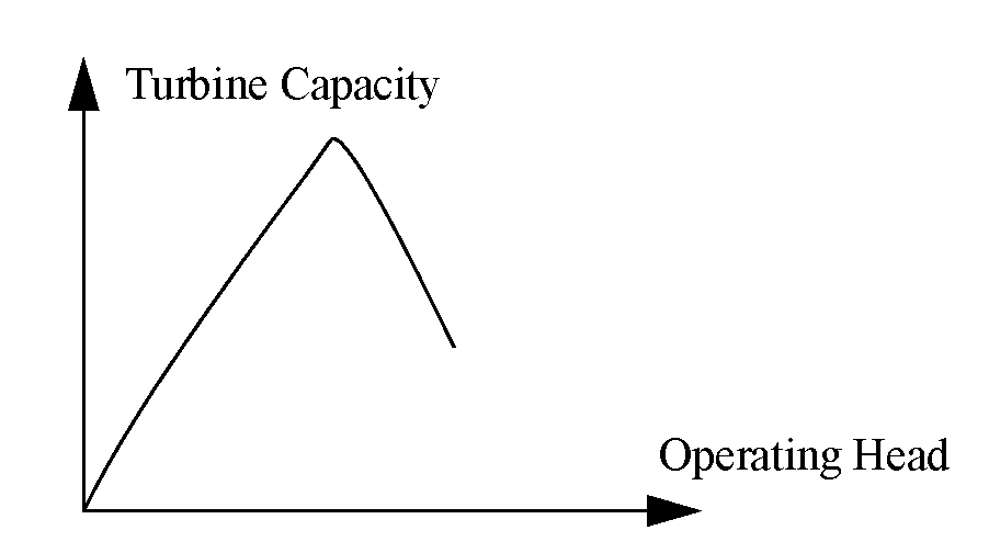 Turbine Capacity Operating Head relationship. Not drawn to scale.