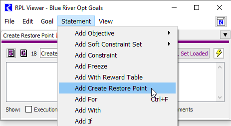 Note:  A Create Restore Point statement should not be included in a goal with a Soft Constraint set or Minimize or Maximize Objective. The Create Restore Point statement should be in its own goal.
