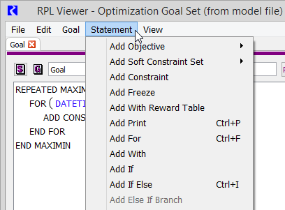 Statement menu in the RPL Viewer or Goal Editor dialog (see
