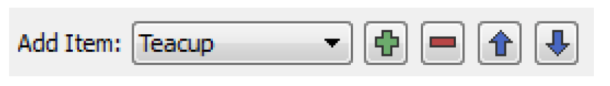 • Add Item Use the menu to select an item to add to the layout. Select Plus to add the selected item. This button is active only when the item can be added. For example, Teacups must be added when a Teacup Group is selected.