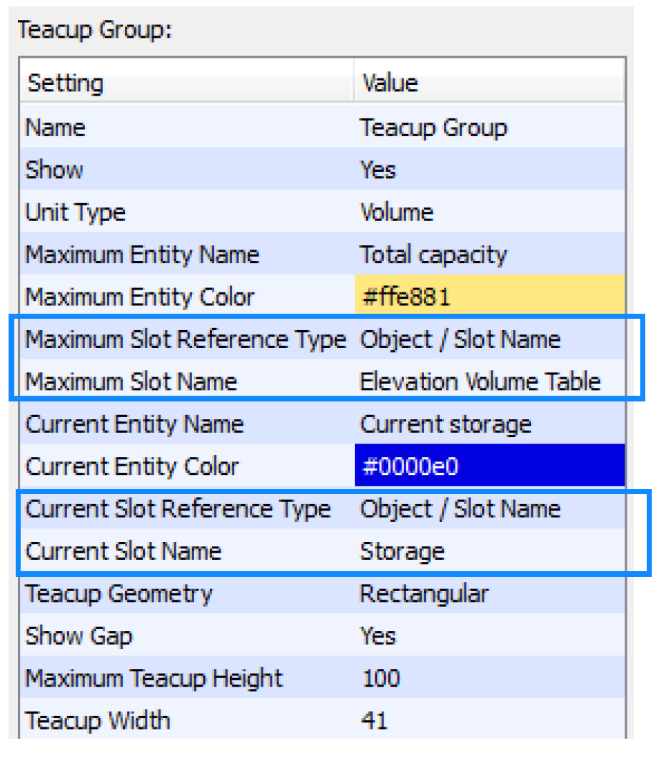 5. Specify the Teacup Geometry (rectangular or trapezoid) and whether you would like to Show Gap on the side of each teacup.