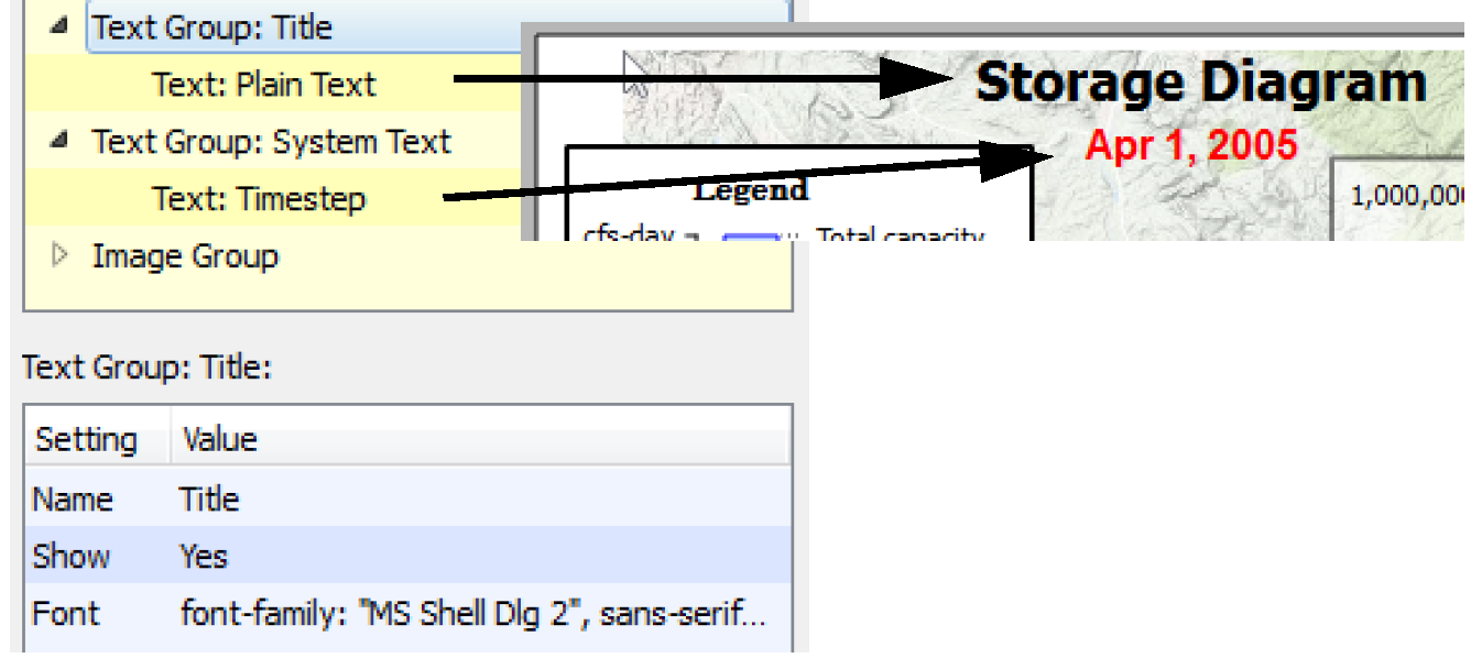 18. Add one or more Text Groups and free-standing Text Items. Use these to create a title, show the timestep, or show a system-wide summary variable. Add a Text Group by selecting it from the Add Item menu and selecting +. Specify the desired Font.