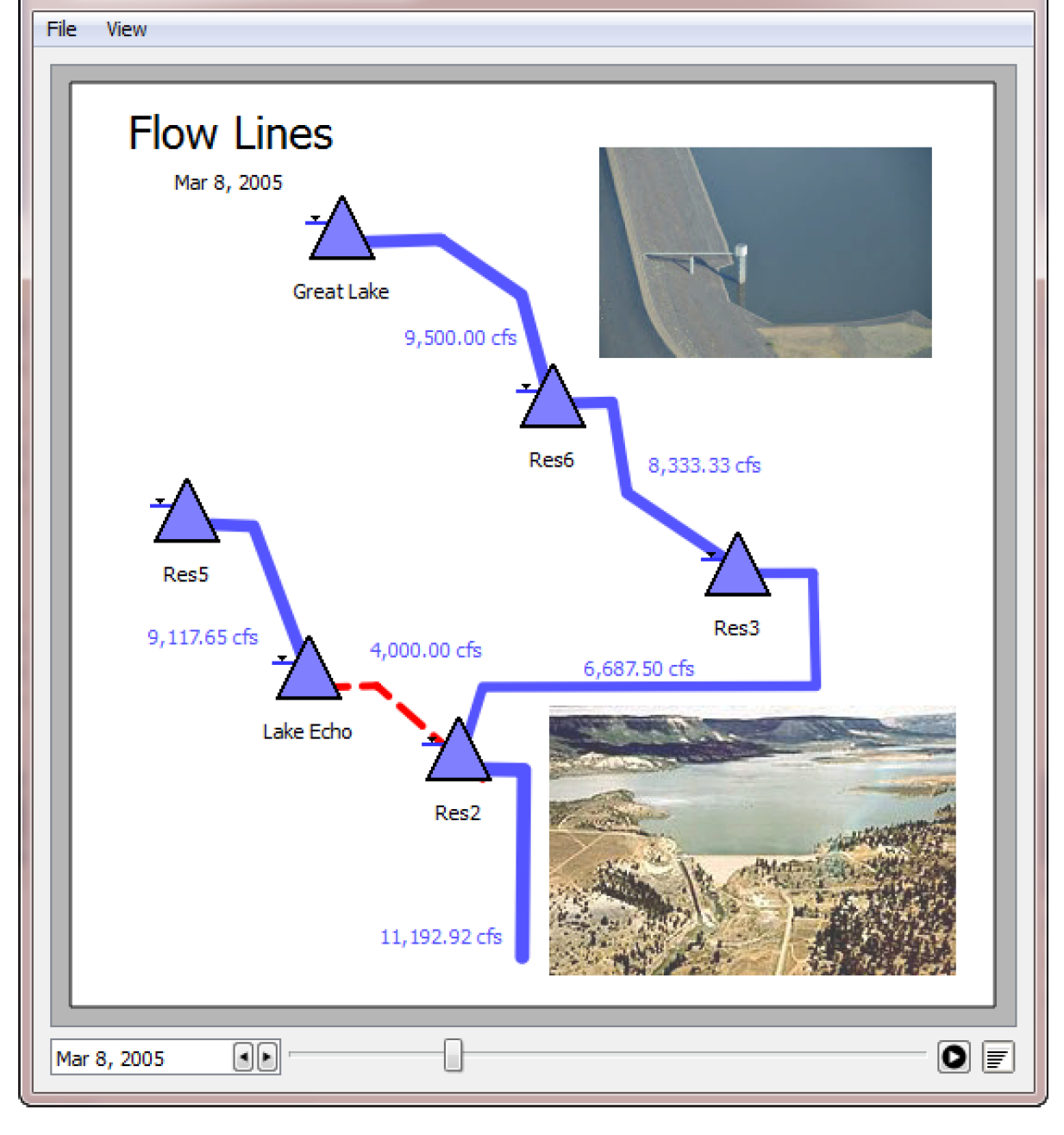 15. Select OK to save the canvas and then generate the device from the Output Manager. Use the animation controls to watch the flow lines change through time. Figure 6.30 and Figure 6.31 show completed sample flow line diagrams.