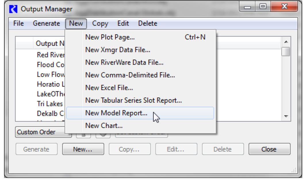 • From the Output Manager dialog menu, select the New, then New Model Report.