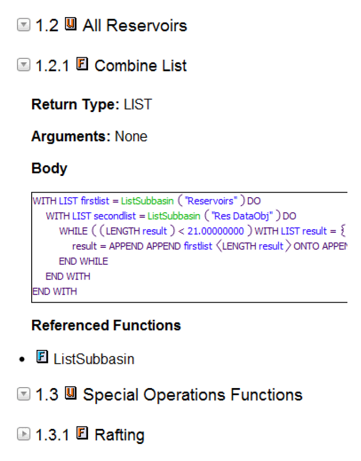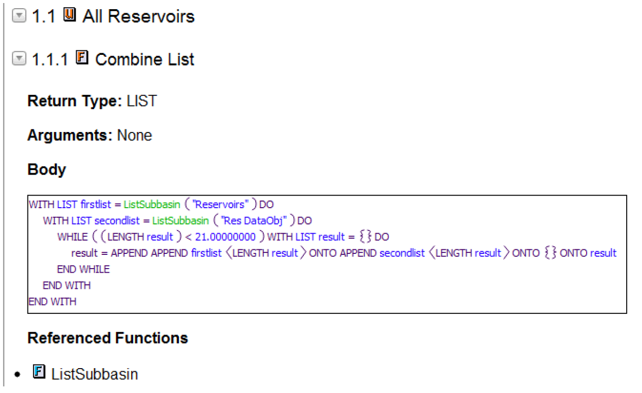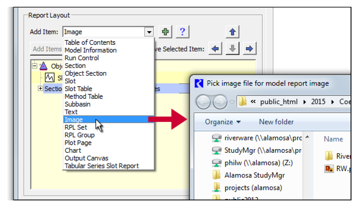These items might generate output for a RPL Report Group, and that group might include references to workspace objects, slots, or subbasins, so these items include format settings that apply to slots, objects, and subbasins. For example, each includes the “Slot: Include Object Name” setting which is used when generating output for a RPL Report Group containing a slot. See Blocks and Groups in RiverWare Policy Language (RPL) for details on groups. See RPL Printing and Formatting in RiverWare Policy Language (RPL) for details on the RPL selector.