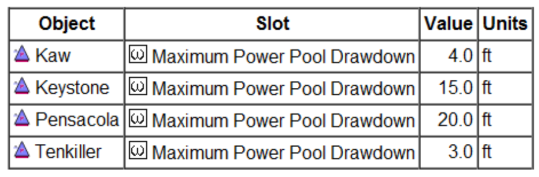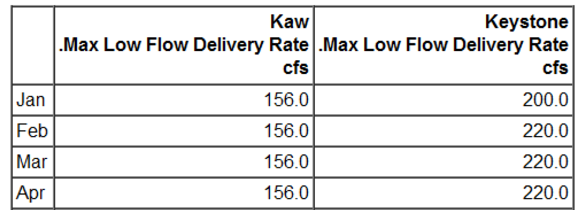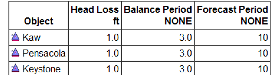 For certain table slots like the reservoir’s Elevation Area Table, a column of storage values corresponding to the elevations (using the Elevation Volume Table) are shown. Select No to not show this Storage column.