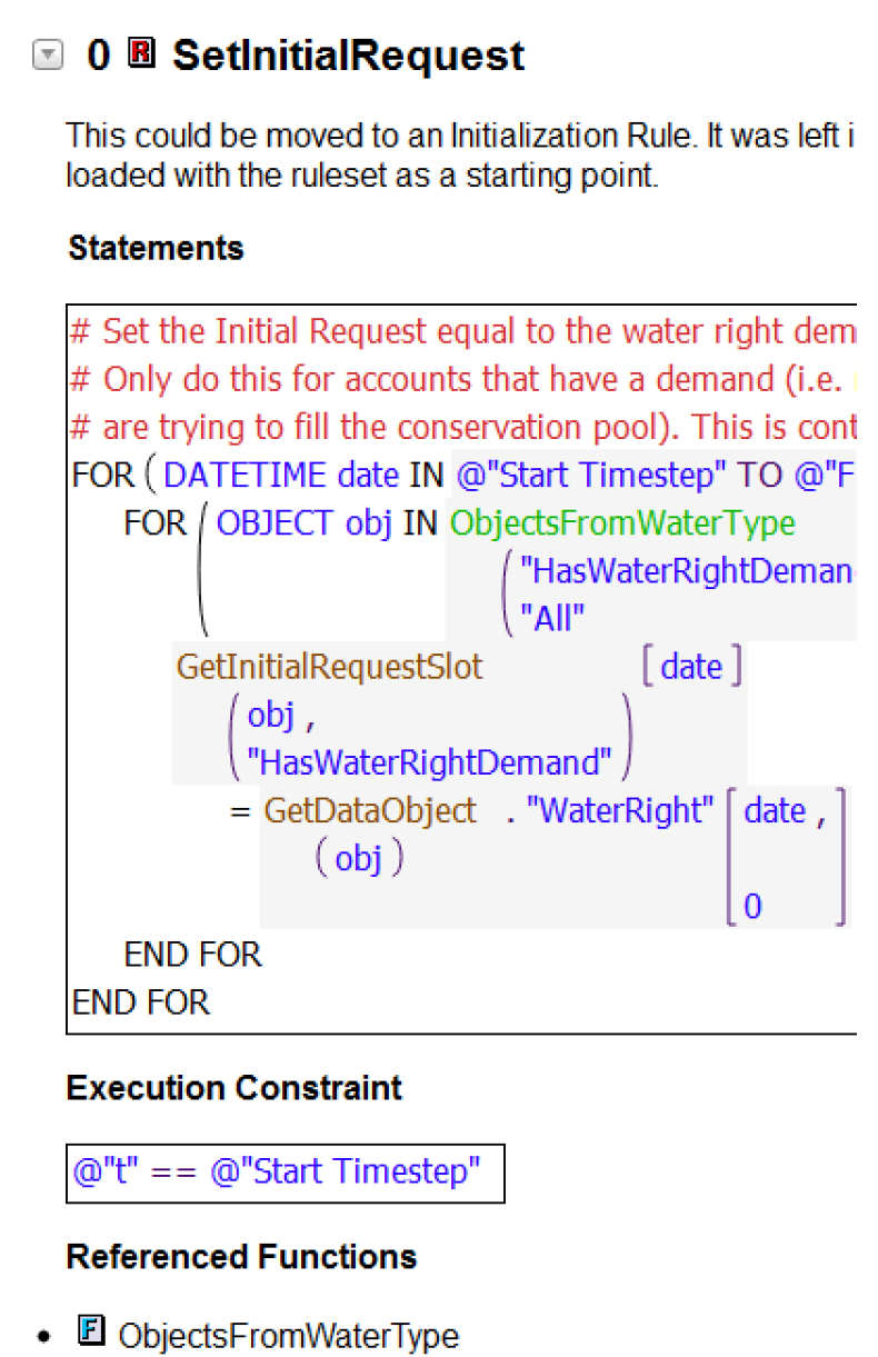 Include the Descriptions entered on each RPL Editor dialog. See Descriptions in RiverWare Policy Language (RPL) for details.