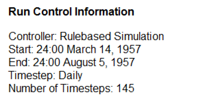Shows the information contained in the single run control dialog, including the controller, start and end dates, and timestep size.