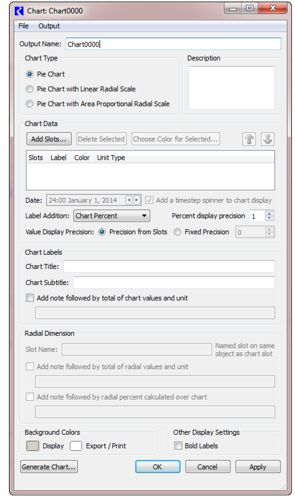 New chart configurations are created within the Output Manager dialog. Use the following steps to create a new chart.