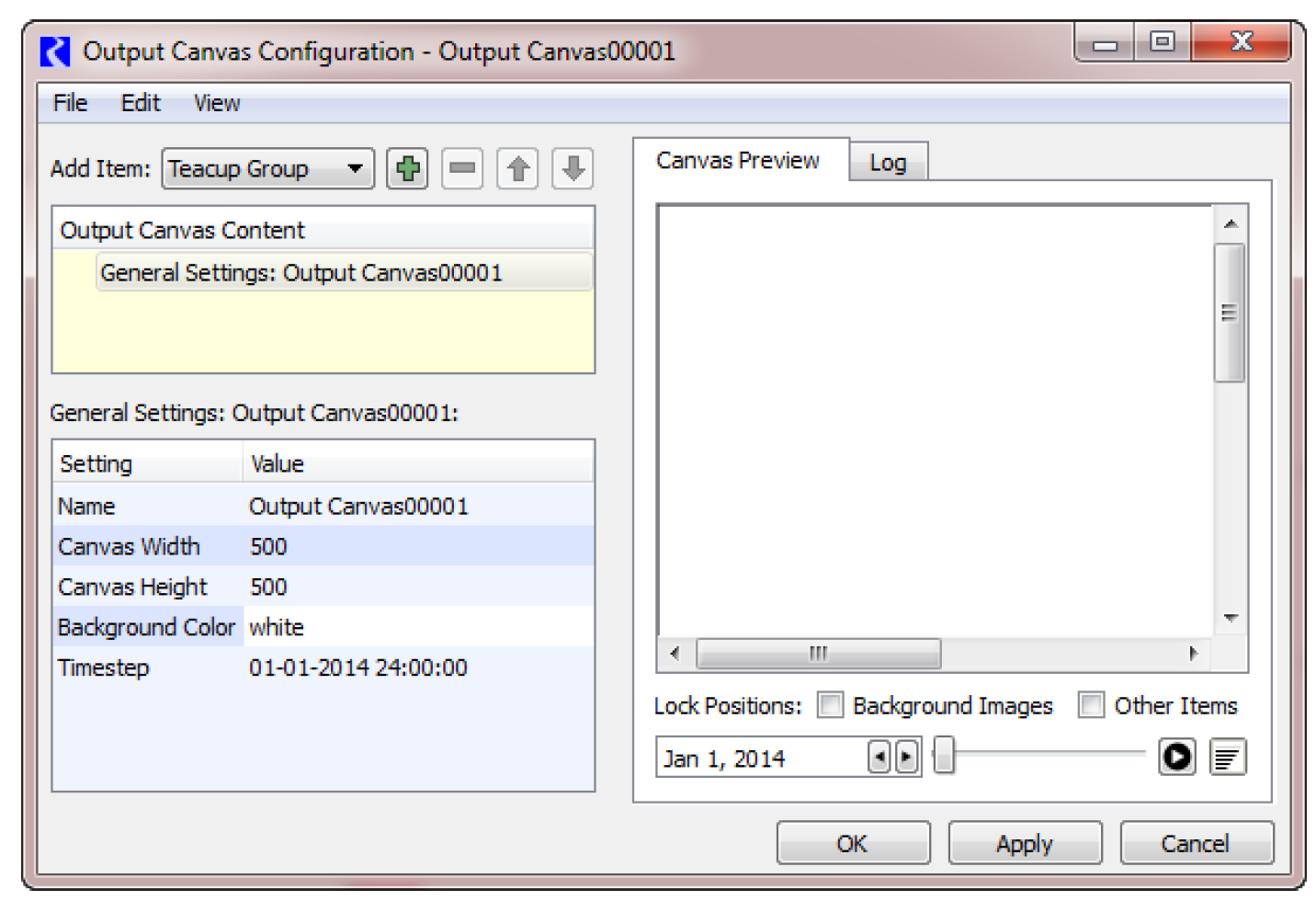 New Output Canvas configurations are created within the Output Manager dialog. Use the following steps to create a new Output Canvas.