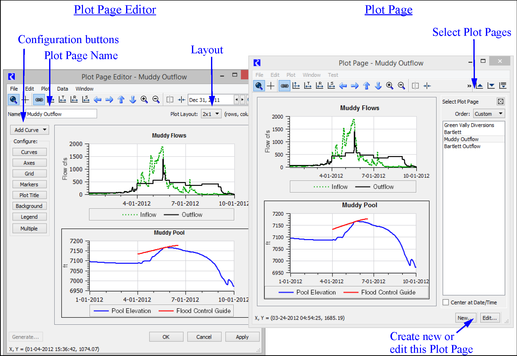 Figure 2.2  Annotated screenshots of the Plot Page Editor and Plot Page Viewer