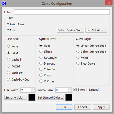 The name for the curve displayed in the plot legend can be modified in the Label field. By default the Object.Slot name is used.