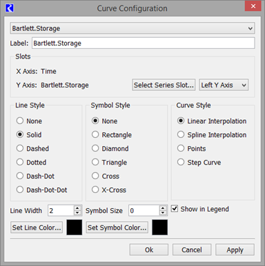In the resulting Curve Configuration dialog, select Select Series Slot to bring up the Slot Selector. After selecting the desired slot and setting the curve configuration options, select OK in the Curve Configuration dialog to add the curve to the plot.