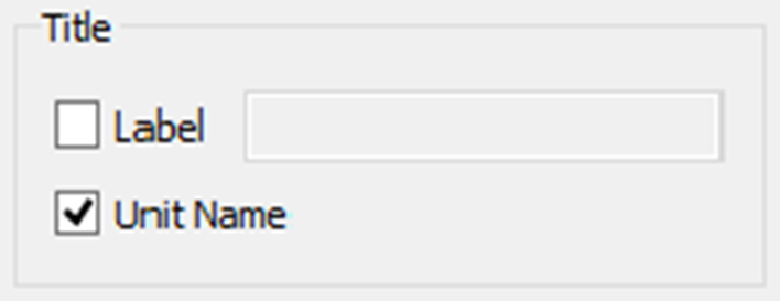 • Title: The axis label can be combinations of a user-supplied Label and the Unit Name. By default the unit name is used as the axis label.