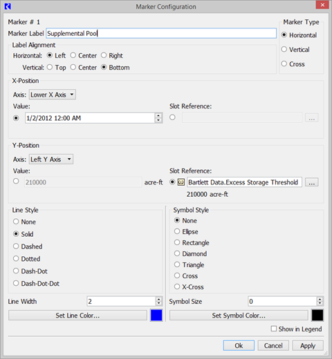 Note: Current support for marker editing is limited to the settings that are also available for curves. This includes all setting operations provided by the Marker Configuration dialog and the Plot Marker Manager. See