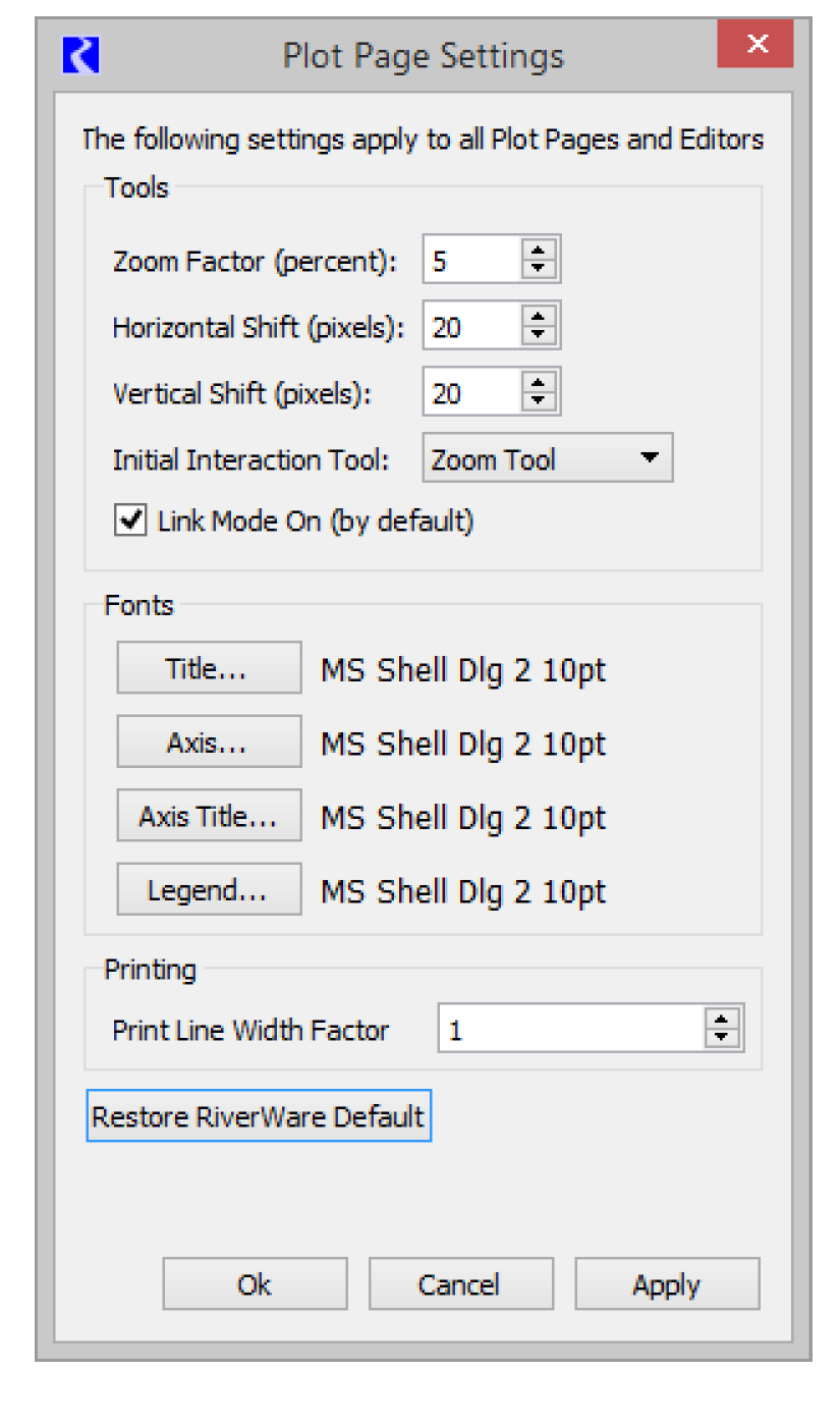 Note: Edits made to this dialog are applied to the plot page being edited in the Plot Editor Dialog. In that dialog, you can either accept those changes (OK or Apply) or Cancel those changes.