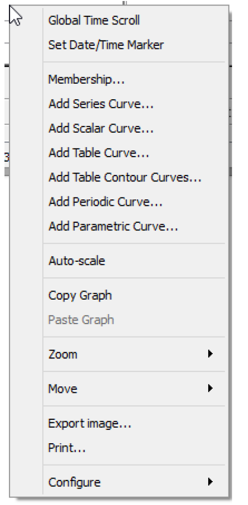 • Right-click the plot area, and then in the resulting context menu select Configure, then Curves.