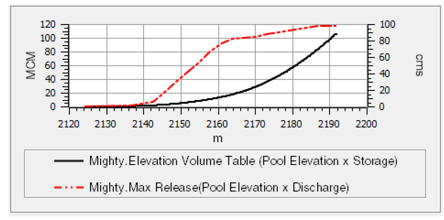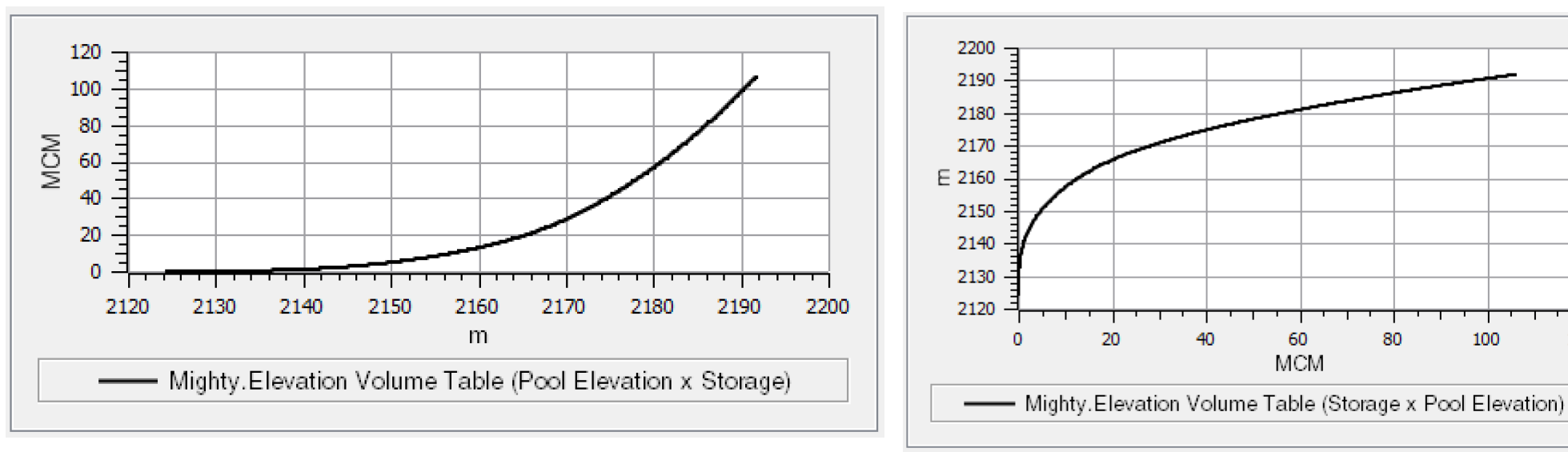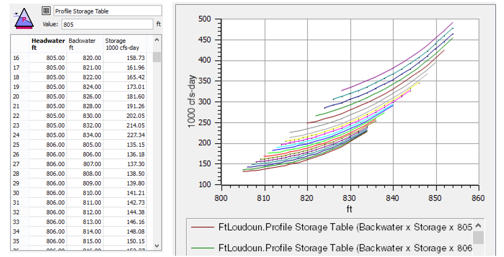 Figure 2.15 is an example of a table contour curve representing the headwater backwater, storage curve. Each curve represents a given Headwater.