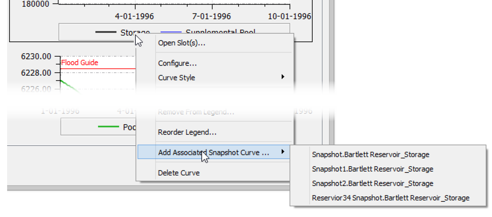 In all cases, the Add Associated Snapshot Curve only is shown when there are snapshots of the plotted slot and there is not already a curve for that slot. Once added, the curves of snapshot slots are no different than other curves. The labels are SnapshotName.OrginalObject_Slot.