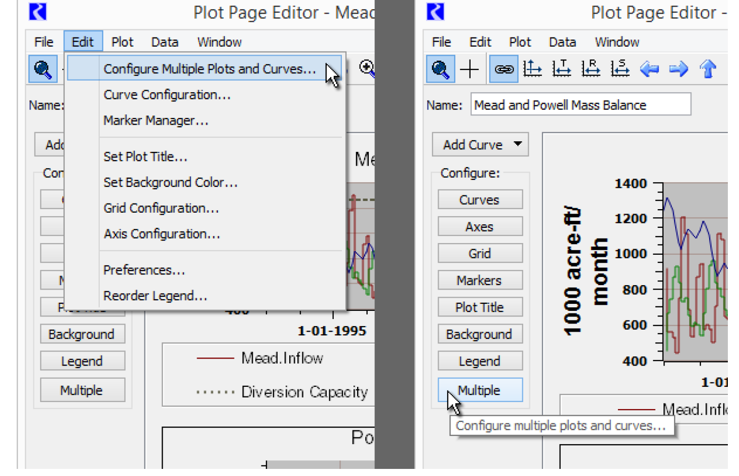 • Select Edit, then Configure Multiple Plots and Curves from the menu bar of the Plot Page Editor.