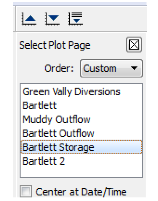 The Plot Pages in the selection list are ordered using the Order menu, as follows: