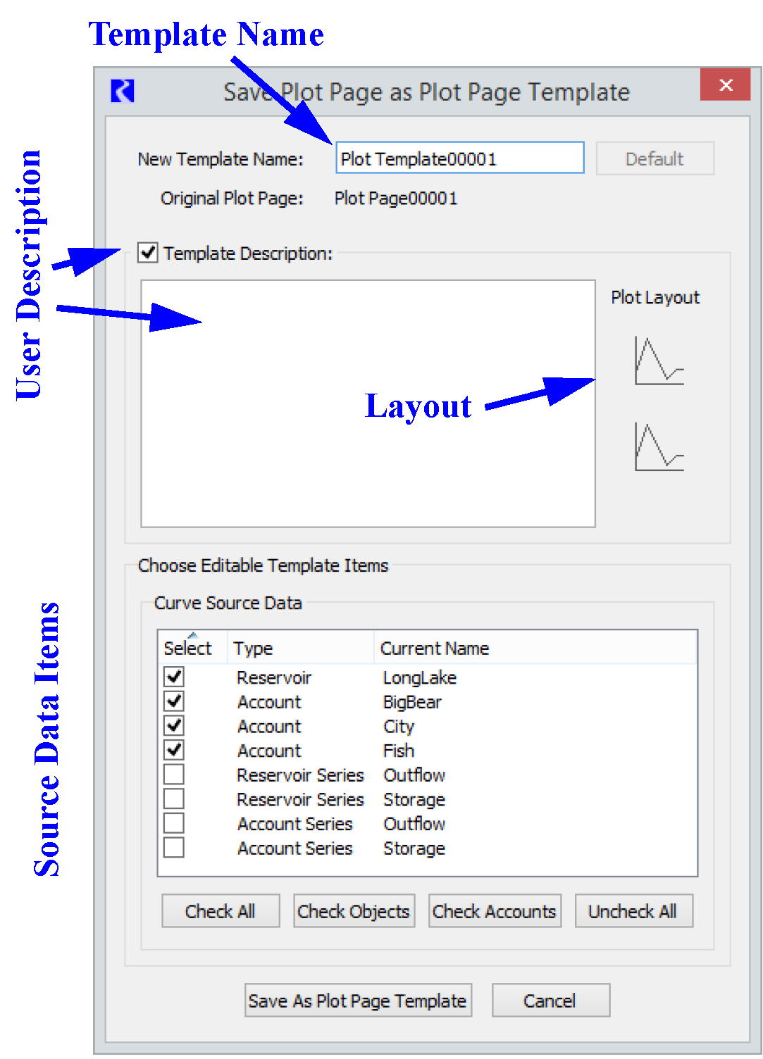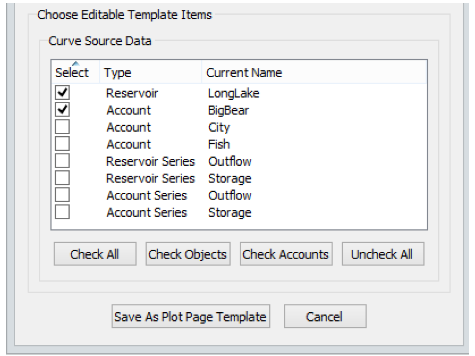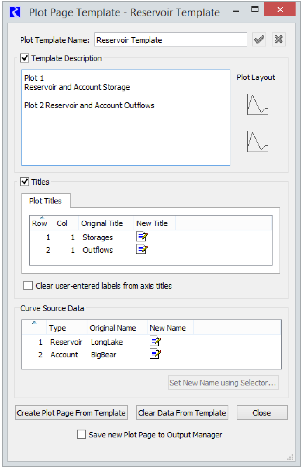Turning this Plot Page into a Template will give you the ability to easily substitute reservoirs, for example, into the Template: