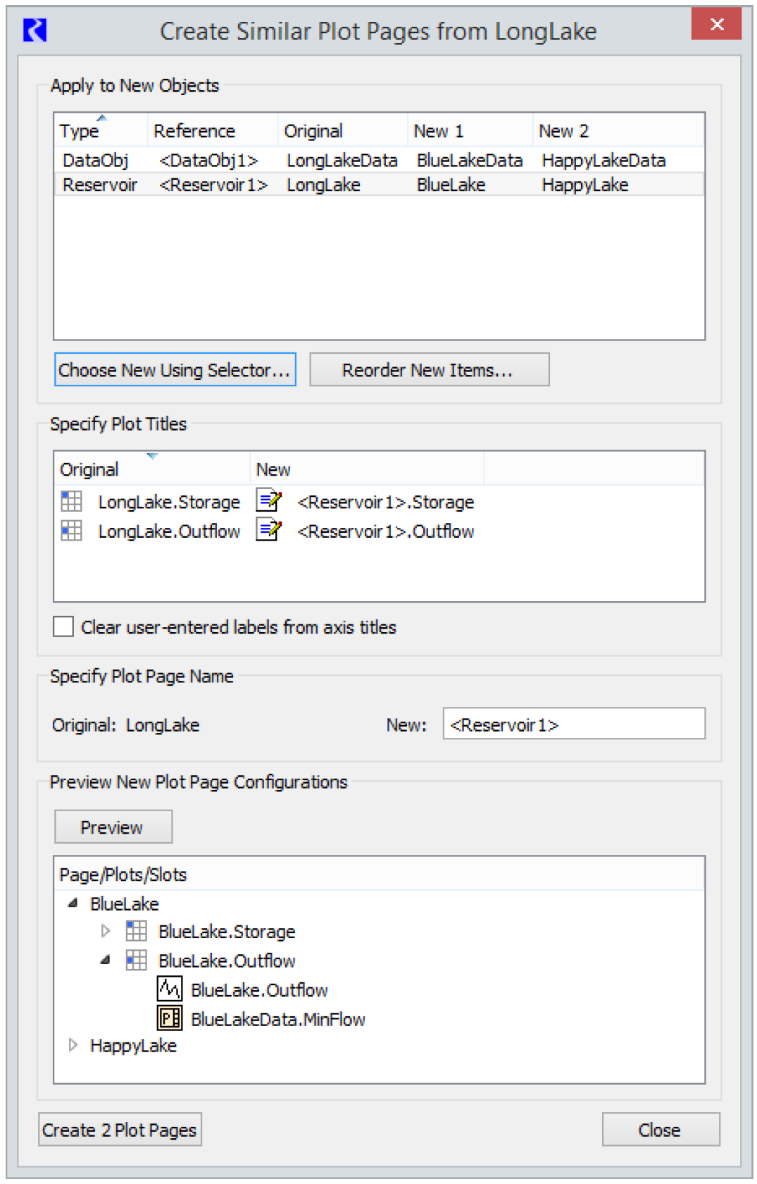 Note:  If the resulting new name for a Plot Page is not unique in the Output Manager, an index number is added to the end and incremented until the name is unique.