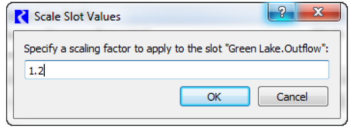 This will bring up the open slot dialog window. You can then import a data file or enter new values by hand for select timesteps or the entire timeseries. Once the slot values have been altered, “Yes” will appear in the slot status Changed field of the Scenario Manager.