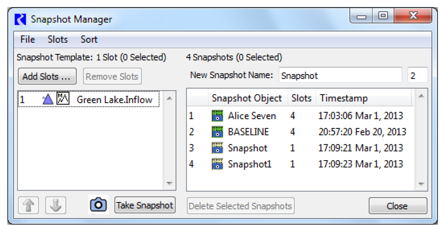 • To open the Snapshot Manager, select View, then Snapshot Manager from the menu bar of the Scenario Manager or select the Snapshot Manager button in the toolbar.