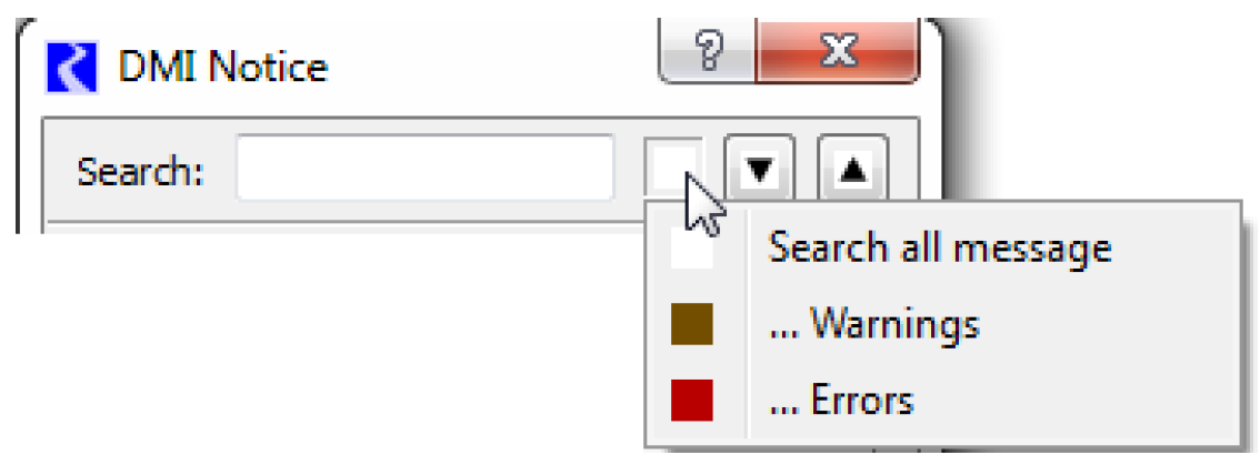 The DMI notice window was enhanced to allow better search and display functionality. The DMI messages are now color coded and you can search for text including wildcards and by message type. For more information, see