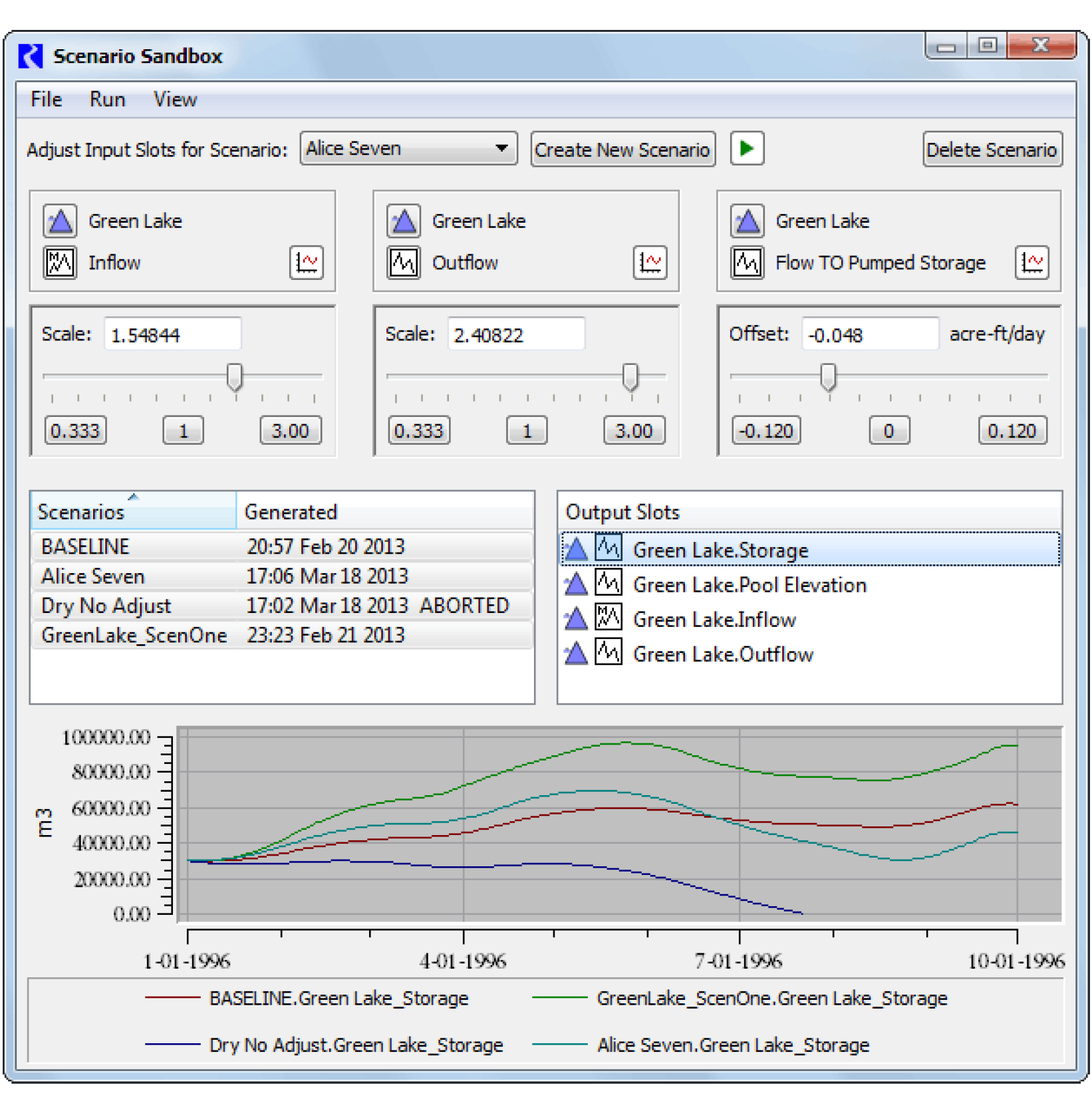 • Plotting of scenario output slots is shown in a plot panel within the sandbox.