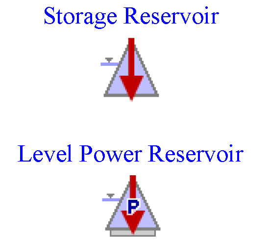 • Changes the Workspace Icon: When this method is selected, the icon on the workspace is modified to indicate the Reservoir is not calculating storage as shown to the right.