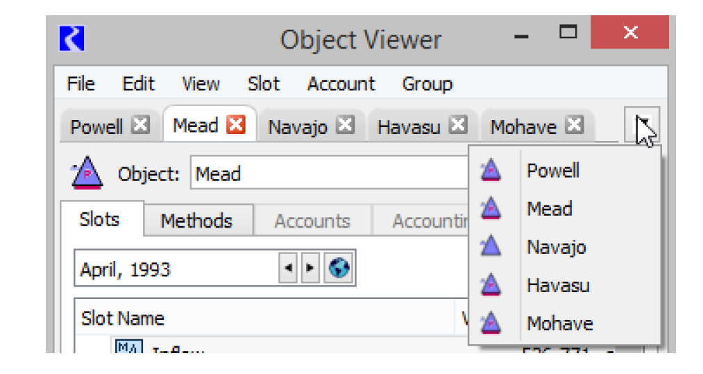 dialogs as tabs in a single dialog. Objects can be dragged off of the viewer to show in the standard Open Object dialog and then re-docked as desired.