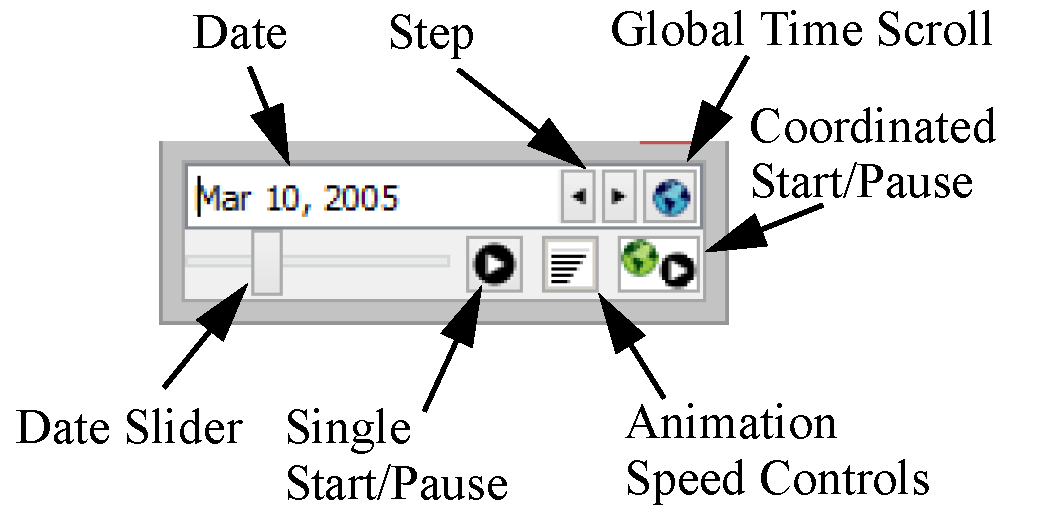 As part of this work, the datetime spinner and animation controls were added to the workspace as a dockable panel below the object list. Use this to advance canvas items through time.