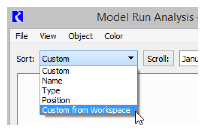 The Model Run Analysis and workspace Object Coordinates dialog were enhanced to allow you to use the workspace custom order in those dialogs too.